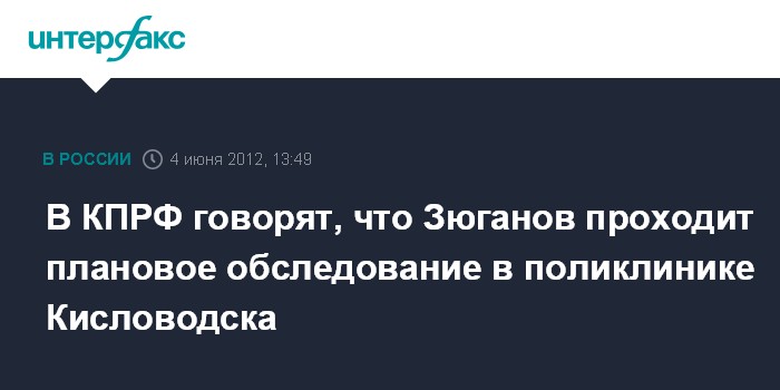 В КПРФ говорят, что Зюганов проходит плановое обследование в поликлинике Кисловодска