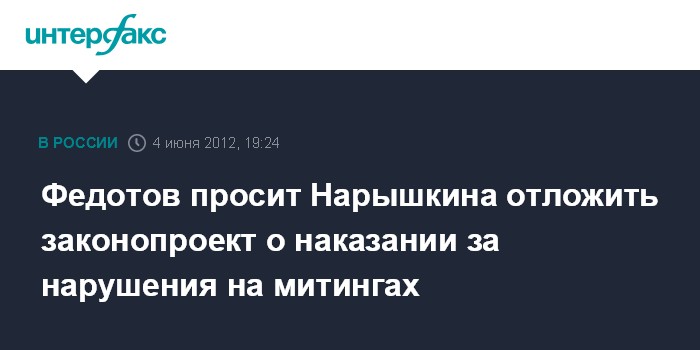 Федотов просит Нарышкина отложить законопроект о наказании за нарушения на митингах