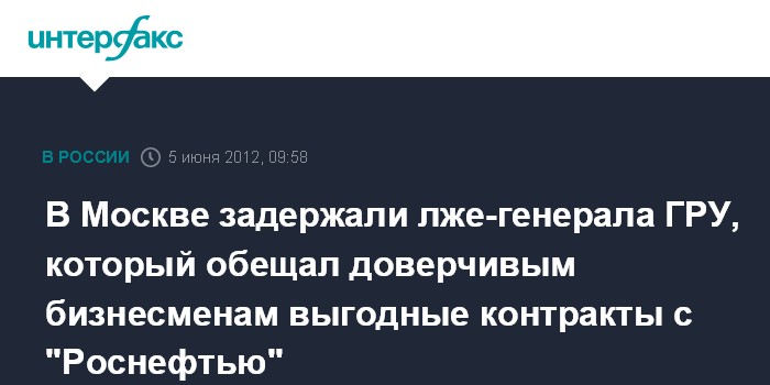 В Москве задержали лже-генерала ГРУ, который обещал доверчивым бизнесменам выгодные контракты с "Роснефтью"