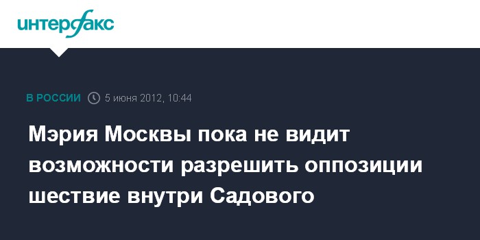 Мэрия Москвы пока не видит возможности разрешить оппозиции шествие внутри Садового