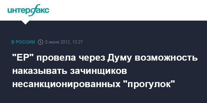 Москва. 5 июня. INTERFAX.RU - Госдума голосами "Единой России" проголосовала за то, что организатором массовой акции, не заявленной как публичное мероприятие, может быть признан человек, фактически выполняющий организационно-распорядительные функции.