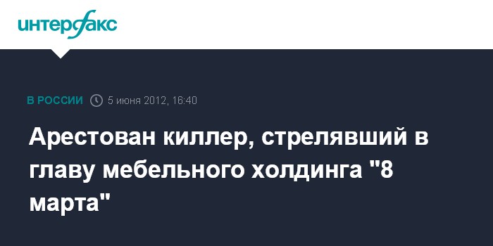 Арестован киллер, стрелявший в главу мебельного холдинга "8 марта"