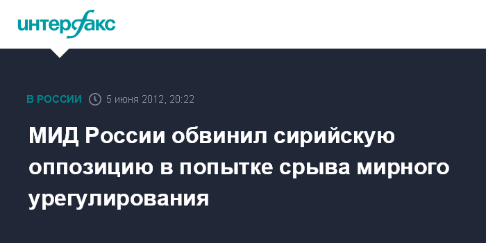 Москва. 5 июня. INTERFAX.RU - Отказ сирийской оппозиции от соблюдения положений плана спецпосланника ООН и ЛАГ Кофи Аннана вызывает в Москве серьезную обеспокоенность, так как это является попыткой сорвать международные усилия по отходу от конфронтации, заявил официальный представитель МИД РФ Александр Лукашевич.