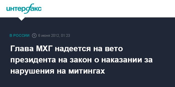 Глава МХГ надеется на вето президента на закон о наказании за нарушения на митингах