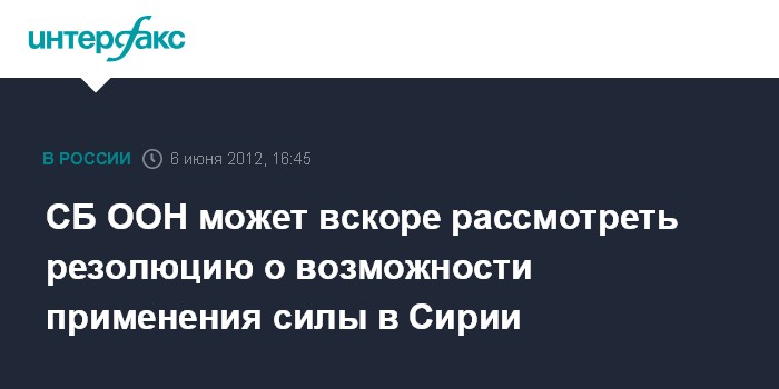 Вашингтон. 6 июня. INTERFAX.RU - Международное сообщество вскоре может рассмотреть в СБ ООН резолюцию, в которой будет содержаться санкция на применение силы в Сирии, заявил в среду министр финансов США Тимоти Гайтнер.