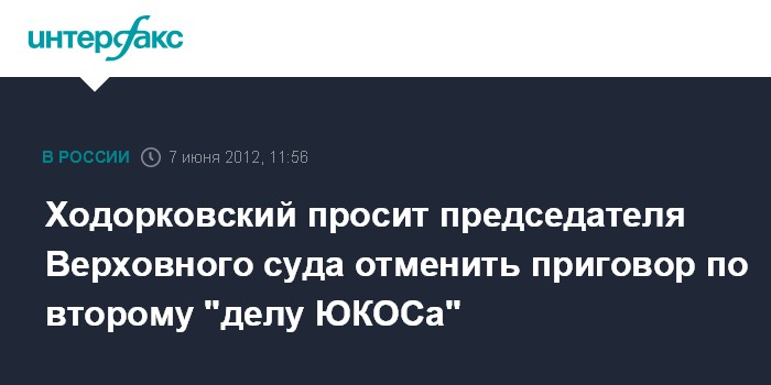Москва. 7 июня. INTERFAX.RU - Бывший руководитель "ЮКОСа" Михаил Ходорковский обратился к председателю Верховного суда РФ Вячеславу Лебедеву с надзорной жалобой на второй приговор.