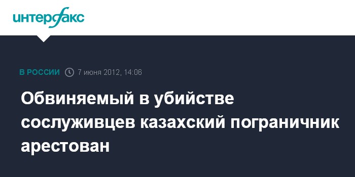 Астана. 7 июня. INTERFAX.RU - Пограничник Владислав Челах, признавшийся в убийстве своих сослуживцев на погранпосту "Арканкерген" в Алматинской области Казахстана, арестован, сообщил официальный представитель Генпрокуратуры Нурдаулет Суиндиков.