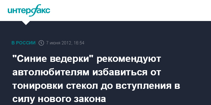 Москва. 7 июня. INTERFAX.RU - Общество "синих ведерок" (ОСВ) рекомендует российским автовладельцам заблаговременно избавиться от чрезмерной тонировки - до ужесточения с 1 июля санкции за это административное правонарушение.