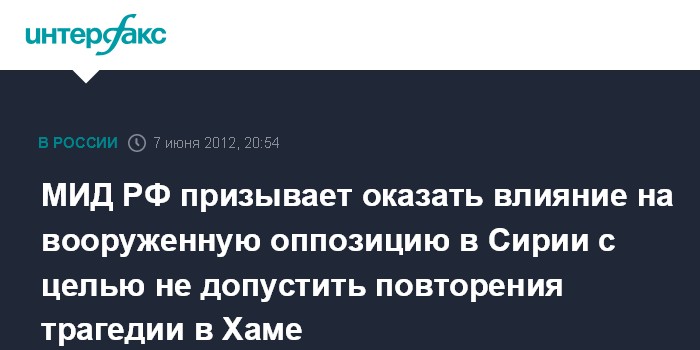 МИД РФ призывает оказать влияние на вооруженную оппозицию в Сирии с целью не допустить повторения трагедии в Хаме