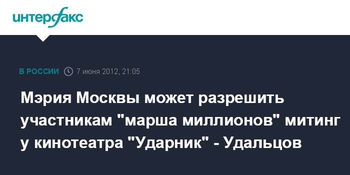 Мэрия Москвы может разрешить участникам "марша миллионов" митинг у кинотеатра "Ударник" - Удальцов