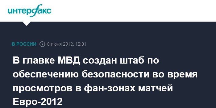 В главке МВД создан штаб по обеспечению безопасности во время просмотров в фан-зонах матчей Евро-2012