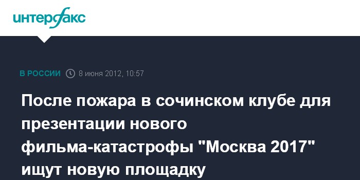 После пожара в сочинском клубе для презентации нового фильма-катастрофы "Москва 2017" ищут новую площадку