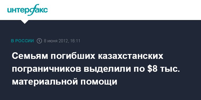 Их семьям окажут материальную помощь в размере 1 млн тенге (текущий курс - 148,64/$1), сообщили агентству "Интерфакс-Казахстан" в пресс-службе областного акимата. Кроме того, областной филиал партии власти "Нур Отан" выделил семьям пограничников по 200 тыс. тенге. Родным погибших будет оказана помощь и в проведении похорон.