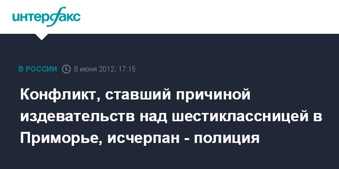 Владивосток. 8 июня. INTERFAX.RU - Полиция Приморья называет инцидент с издевательствами над шестиклассницей в Партизанске, видео которого появилось в интернете, "давно забытым" и заявляет, что все "герои" конфликта были взяты на контроль и помирились.