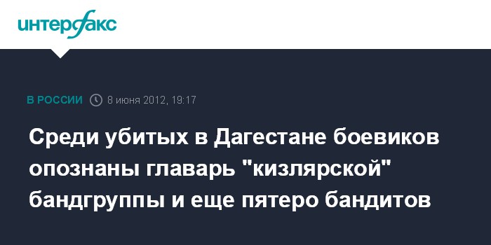 Москва. 8 июня. INTERFAX.RU - Спецслужбы опознали среди уничтоженных в дагестанском городе Южно-Сухокумск Рустама Гасанова, главаря "кизлярской" бандгруппы, сообщили "Интерфаксу" в пятницу в Национальном антитеррористическом комитете (НАК).