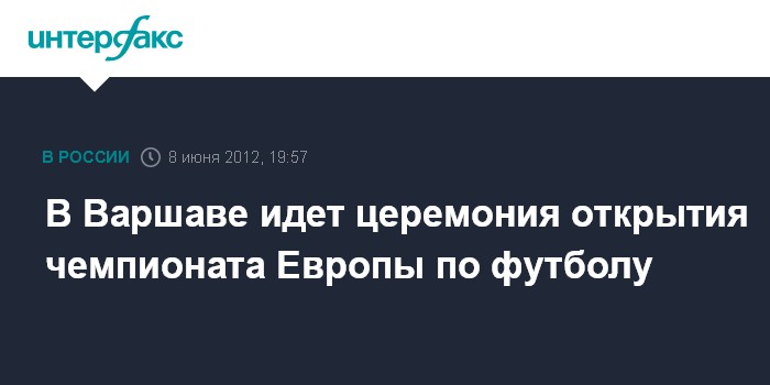 Варшава. 8 июня. INTERFAX.RU - На Национальном стадионе в Варшаве началась церемония открытия чемпионата Европы по футболу 2012 года. Как передает корреспондент агентства "Интерфакс-Украина", шоу стартовало за 20 минут до матча открытия турнира между сборными Польши и Греции.