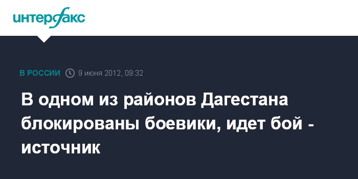 Махачкала. 9 июня. INTERFAX.RU - По предварительным данным, группа боевиков блокирована в лесу в Хивском районе Дагестана, идет бой, сообщил "Интерфаксу" в субботу источник в правоохранительных органах республики.