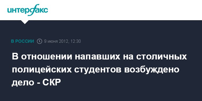 Москва. 9 июня. INTERFAX.RU - Столичные органы СК РФ возбудили уголовное дело в отношении студентов, оказавших сопротивление полиции при задержании подозреваемых в нападении на футбольного болельщика возле ТЦ "Европейский", сообщили в СК РФ.