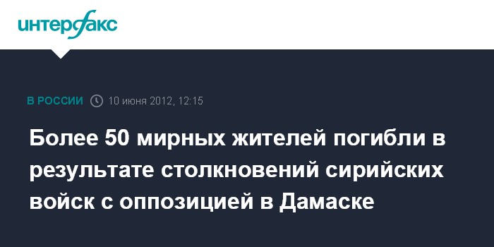 Лондон. 10 июня. INTERFAX.RU - Как минимум 52 мирных жителя погибли в ходе 12-часовых столкновений оппозиционеров с сирийскими правительственными войсками в Дамаске, сообщили в воскресенье представители миссии наблюдателей ООН и сотрудники базирующегося в Лондоне Наблюдательного совета по правам человека.
