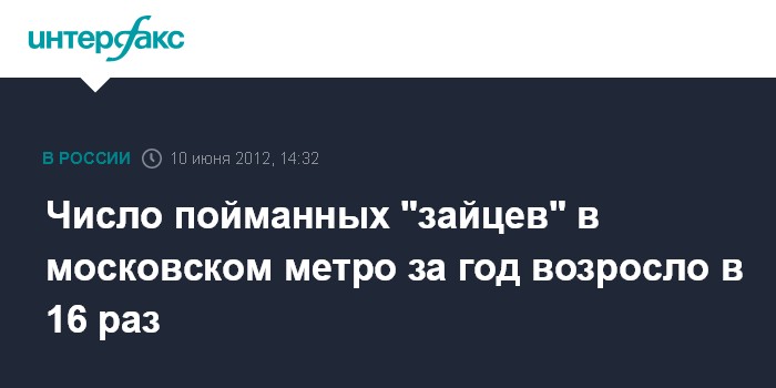 Москва. 10 июня. INTERFAX.RU - В январе-марте 2012 года значительно возросло количество пойманных безбилетников в столичном метро, не оплативших проход через турникеты. "Метрополитен в 16,2 раза задержал больше безбилетников, чем за аналогичный период прошлого года, и вернул их к оплате проезда", - сообщили "Интерфаксу" в пресс-службе метрополитена.