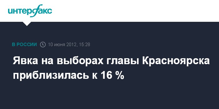 "По данным на 16 часов местного времени явка на выборах главы Красноярска составила 15,94 %. Своим избирательным правом воспользовались 115 тыс 423 жителя Красноярска. Железнодорожный район продолжает сохранять лидерство по активности населения на выборах - там проголосовало 18,45 %. Самая низкая явка в Советском районе города - 14,91 %", - сказал агентству "Интерфакс-Сибирь" представитель горизбиркома.