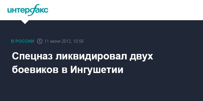 Москва. 11 июня. INTERFAX.RU - В Сунженском районе Ингушетии в понедельник утром уничтожены два участника незаконных вооруженных формирований, сообщил "Интерфаксу" источник в правоохранительных органах. "Около 9:40 МСК недалеко от станицы Нестеровская спецназ республиканского МВД проводил поисковые мероприятия и наткнулся на засаду боевиков. В результате боестолкновения два члена НВФ были ликвидированы", - рассказал источник.