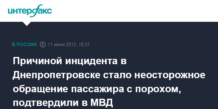 Причиной инцидента в Днепропетровске стало неосторожное обращение пассажира с порохом, подтвердили в МВД