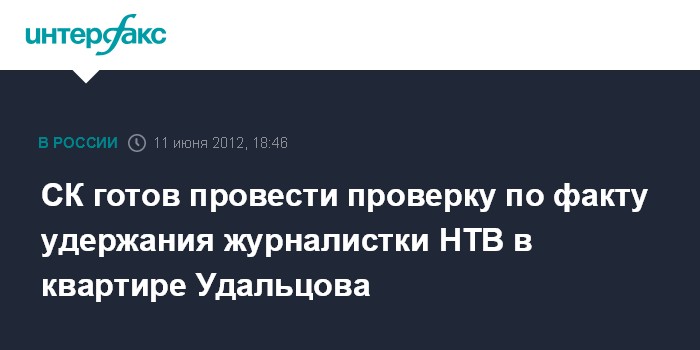 Москва. 11 июня. INTERFAX.RU - Следственные органы проведут проверку по факту незаконного удержания журналистки НТВ Елены Жигулиной в квартире координатора "Левого фронта" Сергея Удальцова, если та обратиться в следственные органы с соответствующим заявлением, сообщили в Следственном комитете России. "Если журналистка обратится с соответствующим заявлением в следственные органы Следственного комитета России, Главным следственным управлением по городу Москве по данному факту будет незамедлительно организована доследственная проверка, по результатам которой будет принято установленное законом процессуальное решение", - говорится в сообщении, размещенном на сайте ведомства.