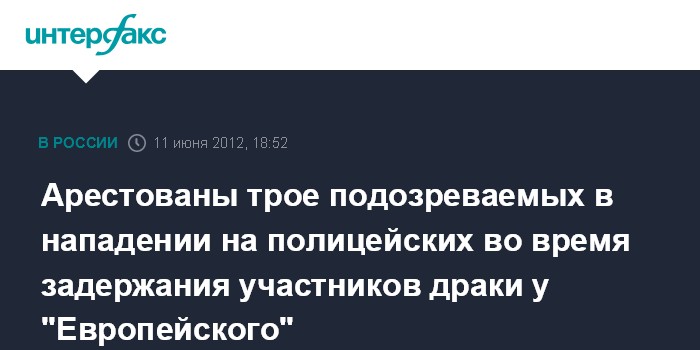 Арестованы трое подозреваемых в нападении на полицейских во время задержания участников драки у "Европейского"