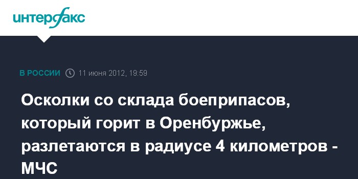 Осколки со склада боеприпасов, который горит в Оренбуржье, разлетаются в радиусе 4 километров - МЧС