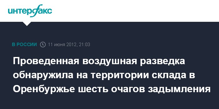 "Проведенная воздушная разведка обнаружила на территории склада в Оренбуржье шесть очагов задымления. Жертв среди военнослужащих и сотрудников артиллерийского склада нет. По уточненным данным, один военнослужащий госпитализирован с диагнозом "отравление угарным газом" легкой степени. По данным медицинских работников угрозы здоровью военнослужащего нет", - отметили в пресс-службе.