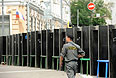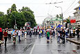 Корреспондент сообщает, что людей собралось очень много. Колонна участников предстоящего шествия растянулась по Страстному бульвару от улицы Петровка до кинотеатра "Пушкинский", где установлены стационарные металлодетекторы. Здесь колонна разделилась на три части - левую и правую, которые выстроились на проезжей части, и еще одну, которая стоит непосредственно в сквере.