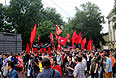 Сергей Удальцов возглавил колонну левых сил на "Марше миллионов". Участники шествия пока стоят в ожидании начала акции; организаторы просят не заходить за белую ленту, растянутую на Петровке.