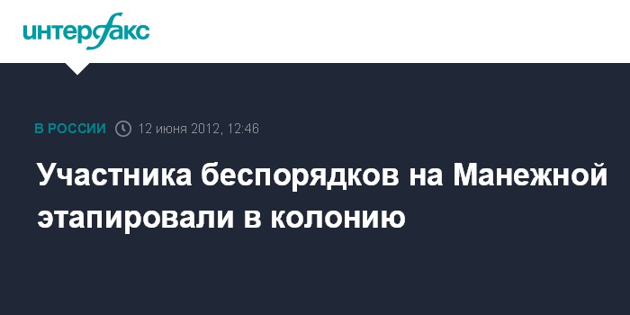 Москва. 12 июня. INTERFAX.RU - Активист незарегистрированной оппозиционной партии "Другая Россия" Игорь Березнюк, осужденный по делу о беспорядках на Манежной площади, этапирован в колонию в Белгородской области, сообщила пресс-служба партии.
