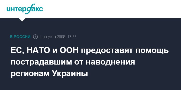 Москва. 4 августа. INTERFAX.RU - В ближайшее время ожидается гуманитарная и техническая помощь от ЕС, НАТО, ООН, Японии, Испании, США и Эстонии в связи со стихийным бедствием в западных регионах Украины.