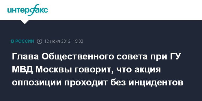 Глава Общественного совета при ГУ МВД Москвы говорит, что акция оппозиции проходит без инцидентов