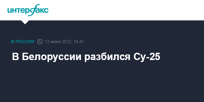 Минск. 12 июня. INTERFAX.RU - Самолет Су-25 116-й штурмовой авиационной базы ВВС и войск ПВО Вооруженных сил Белоруссии потерпел катастрофу во вторник в Гродненской области, в результате которой погиб пилот, сообщили агентству "Интерфакс- Запад" в пресс-службе министерства обороны республики.