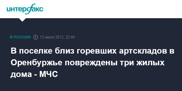 Нижний Новгород. 12 июня. ИНТЕРФАКС-ПОВОЛЖЬЕ - Несколько жилых домов в населенном пункте "14 километр" Оренбургской области оказались повреждены в результате ЧП на военных складах.