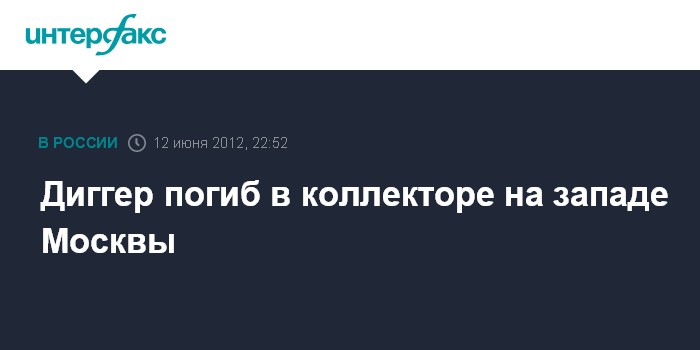 Москва. 12 июня. ИНТЕРФАКС - Нелегальный диггер погиб во вторник в ходе несанкционированного спуска в коллектор на западе Москвы, сообщили "Интерфаксу" источник в правоохранительных органах.