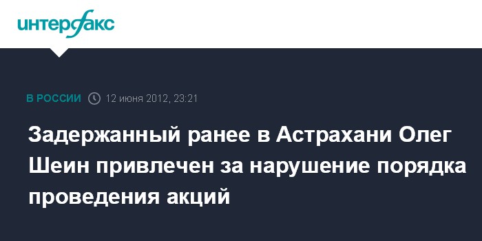 Ранее сообщалось, что бывший кандидат в мэры Астрахани эсер О.Шеин, задержанный во вторник за проведение несанкционированной акции, отпущен из отделения полиции.