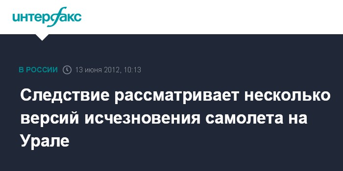 Следствие рассматривает несколько версий исчезновения самолета на Урале