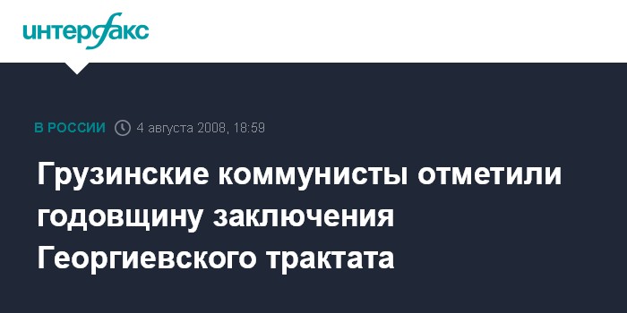 Москва. 4 августа. INTERFAX.RU - Несколько десятков грузинских коммунистов в понедельник отметили 225-ю годовщину со дня подписания Георгиевского трактата, по которому Грузия добровольно вошла в состав Российской Империи.