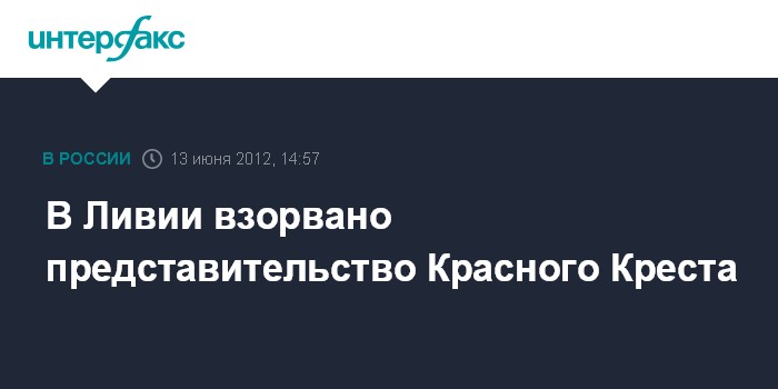 Каир. 13 июня. INTERFAX.RU - Взрыв прогремел в представительстве Международного комитета Красного Креста (МККК) в ливийском городе Мисурата, сообщает в среду веб-сайт местной англоязычной газеты Tripoli Post.
