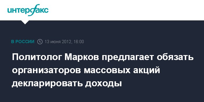 Москва. 13 июня. INTERFAX.RU - Политолог Сергей Марков считает, что организаторы массовых акций должны подавать декларации о доходах.