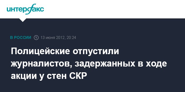 Москва. 13 июня. INTERFAX.RU - Журналистов, задержанных полицией около здания Следственного комитета в Москве, отпустили, сообщила одна из задержанных, корреспондент "Эха Москвы" Ольга Бычкова.