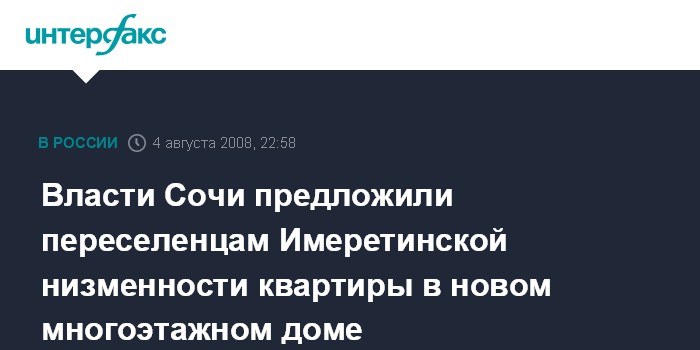 Сочи. 4 августа. ИНТЕРФАКС-ЮГ - В рамках подготовки к Олимпиаде-2014 администрации Сочи и Краснодарского края выступили с предложением вести конструктивный диалог в вопросах переселения жителей Имеретинской низменности.