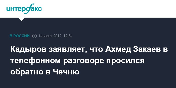 Кадыров заявляет, что Ахмед Закаев в телефонном разговоре просился обратно в Чечню
