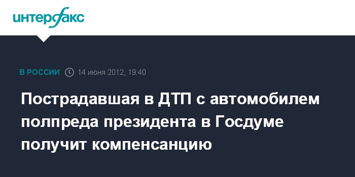 Пострадавшая в ДТП с автомобилем полпреда президента в Госдуме получит компенсанцию