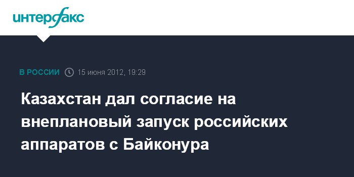 Санкт-Петербург. 15 июня. INTERFAX.RU - Казахстан дал согласие российской стороне на внеплановый запуск космических аппаратов с космодрома Байконур, сообщил премьер-министр республики Карим Масимов.