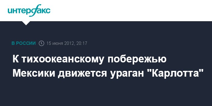 Вашингтон. 15 июня. INTERFAX.RU - Ураган "Карлотта" сформировался у тихоокеанского побережья Мексики в 530 км юго-западнее курортного города Акапулько, сообщил в пятницу Американский центр наблюдения за ураганами.